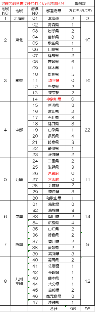 1の「範囲」は、各事例がいずれか1つに該当するので合計は96件です。
