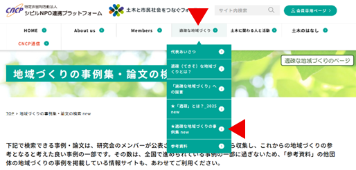 CNCPのプラットフォーム事業のプロジェクトの1つである「適疎な地域づくり研究会」の活動は、賛助会員のゼネコンの方々を中心に、CNCPの代表・副代表・常務理事も参加し、CNCPとして力を入れている活動です。既に、CNCPのホームページに、「適疎な地域づくりのページ」があることはご存じと思いますが、先月、「事例」の検索システムを追加しました。本稿では、その使い方をお知らせしますので、是非、使ってみてください。
