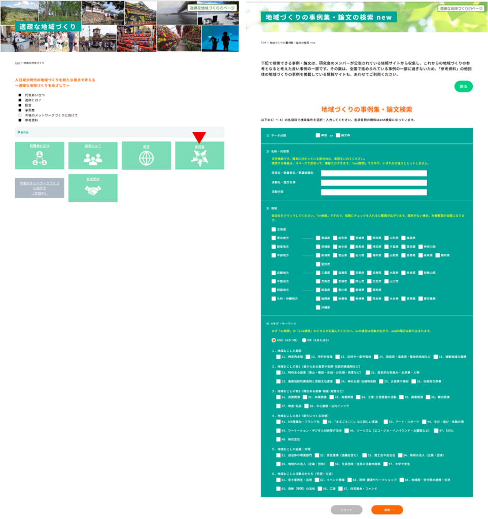 ここに紹介している事例と論文等は、研究会のメンバーが、公表されている地域づくりの情報サイト等から、これからの地域づくりの参考となると考えて抽出した、よい事例の一部です。